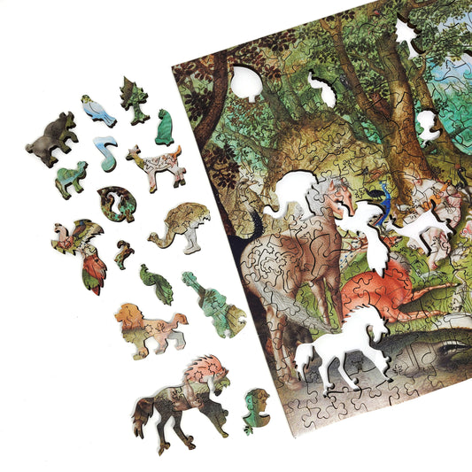 Wooden Jigsaw Puzzle with Uniquely Shaped Pieces for Adults - 390 Pieces - Orpheus charming the animals