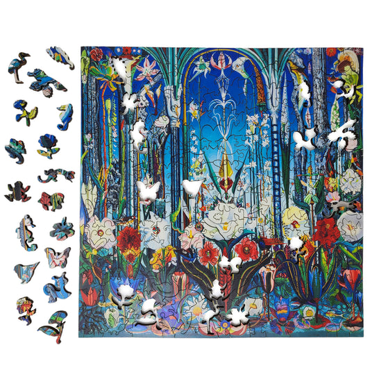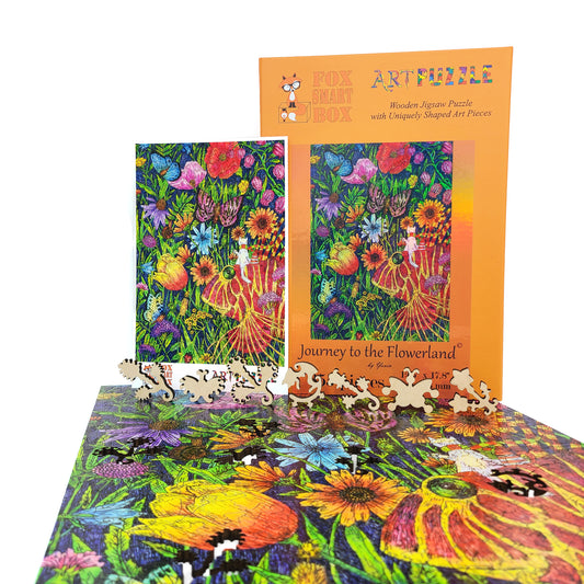Wooden Jigsaw Puzzle with Uniquely Shaped Pieces for Adults - 355 Pieces - Journey to the Flowerland