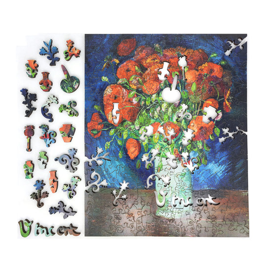 Wooden Jigsaw Puzzle with Uniquely Shaped Pieces for Adults - 235 Pieces - Vase with red poppies