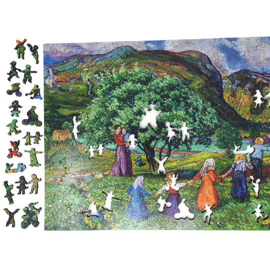 Wooden Jigsaw Puzzle for Adults - Uniquely Shaped Pieces - 225 Pieces - Summer and Playing Children