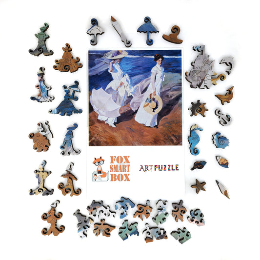 Large Format Wooden Jigsaw Puzzle with Uniquely Shaped Pieces for Seniors and Adults - 190 Pieces - Strolling along the Seashore