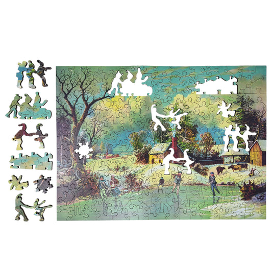 Large Format Wooden Jigsaw Puzzle with Uniquely Shaped Pieces for Seniors and Adults - 212 Pieces - American Winter Life