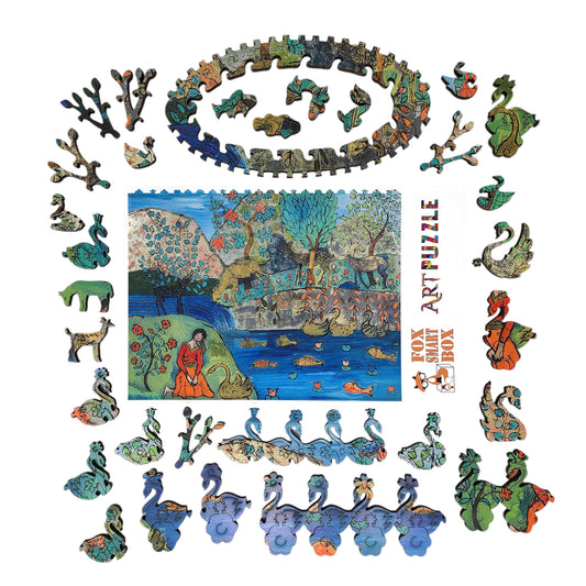 Large Format Wooden Jigsaw Puzzle with Uniquely Shaped Pieces for Seniors and Adults - 232 Pieces - Girl with Swan