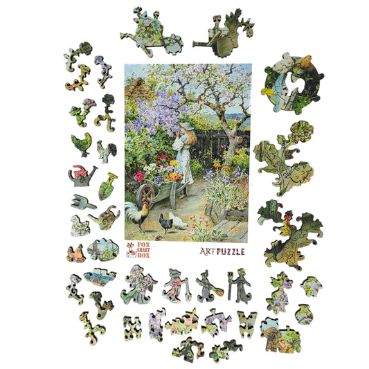 Large Format Wooden Jigsaw Puzzle with Uniquely Shaped Pieces for Seniors and Adults - 220 Pieces - In the Bey's Garden