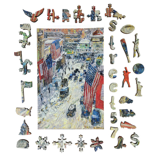 Large Format Wooden Jigsaw Puzzle with Uniquely Shaped Pieces for Seniors and Adults - 215 Pieces - Flags on 57th Street, Winter