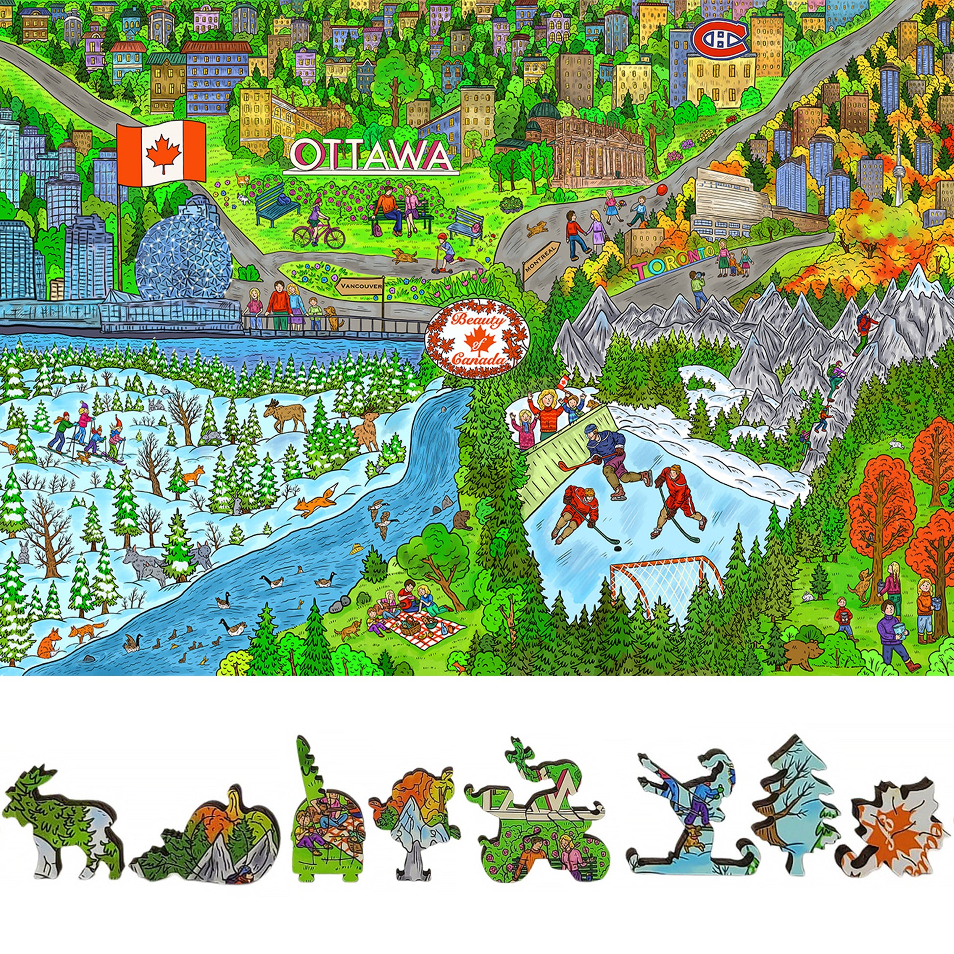 Wooden Jigsaw Puzzle for Adults - Uniquely Shaped Pieces - 444 Pieces - The Beauty of Canada
