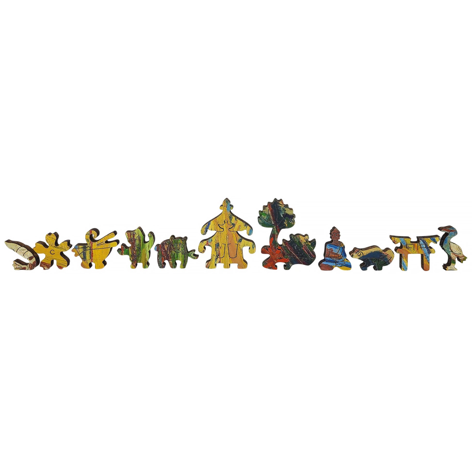 Sophisticated elements, cut with a high-precision laser, seamlessly slide together into colorful art, making it oddly satisfying to place each wooden piece. Each puzzle contains dozens of hand-drawn, uniquely shaped pieces called “whimsies.” These whimsies are designed by artists and crafted to match the puzzle’s theme and tell a story. The intricately cut wooden puzzle challenges puzzlers and provides hours of enjoyment.